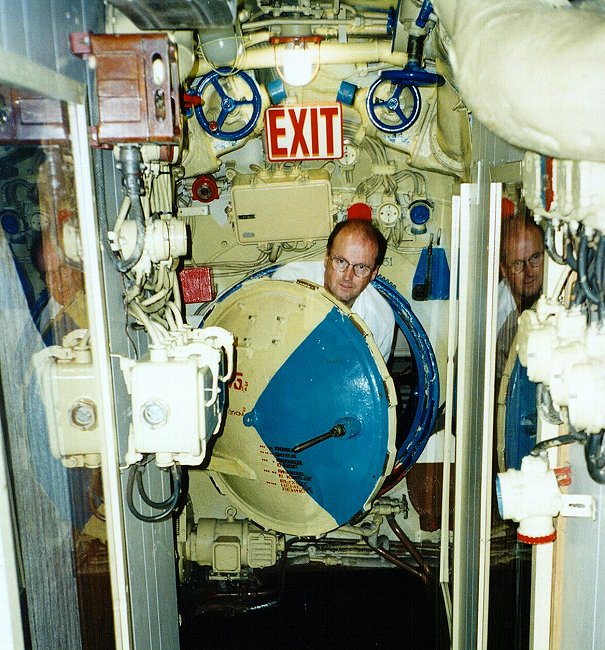 Digs figgered one of the hatch doors would make a good souvinir. You know, lend a nautical touch to the ol' rumpus room back home -- until he tried to close one. They're heavy, kids. Really, really heavy.
