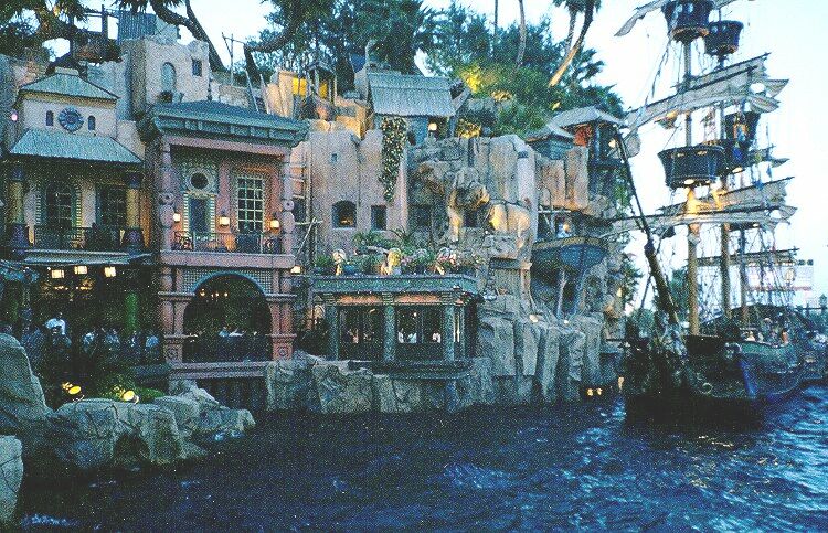 The British Navy ship, normally hidden from view around the side of the island, sails into view.