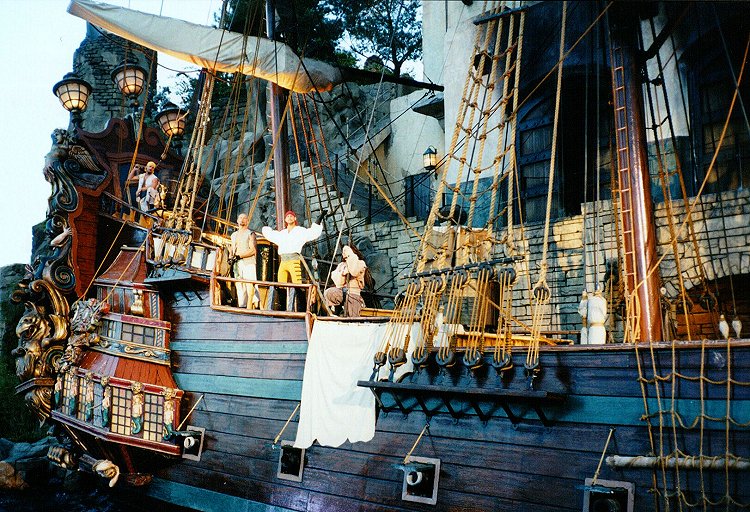After a bit more cannon type stuff and a bunch of yelling, the pirates sink the British ship and indulge in a little gloating. The Brit ship actually does sink, by the way. The Mayor was on the pirate side of the walkway, however, so there are no pics. Maybe next time. |